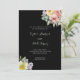 Introducing our stunning modern wedding invitation with beautiful pastel flowers. This invitation is black, creating a sophisticated, luxurious look and feel. The pastel coloured flowers in the top right and bottom left corners add a pop of colour and elegance to the design.