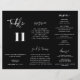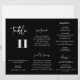 Turn this paper sheet into a modern black wedding tri-fold menu, table number and program with information about the timeline, things that are good to know, food and bar menu. Simply fold, tape the seam on the back and use this modern wedding stationery program for your wedding reception. Background colour can be changed in the design tool if you like!