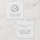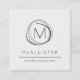 Simple and striking black and white business cards in a unique square shape leave a modern impression. Front side features a single initial monogram encircled by an abstract element, with two lines of custom text beneath in modern lettering. Add your full contact details to the reverse side. Suitable for any occupation; example shown for consulting businesses.