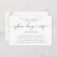 This elegantly simple recipe card showcases graceful black calligraphy on a crisp white background, offering a sleek and modern touch for any bridal shower. With its minimalist design, it’s perfect for gathering favourite recipes in a sophisticated way. Ideal for guests to share their treasured dishes with the bride-to-be, this card beautifully combines both style and meaningful sentiment for a special keepsake.