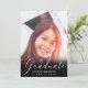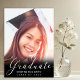 This modern simple minimalist graduation announcement and party invitation includes your photo on the front with an overlay of white calligraphy script on black that reads "Graduate" with your name and class/year to personalise. The back of the card is black with white text with all your graduation and party information to customise. Designed by Susan Coffey.