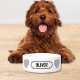 Modern White & Black Dog Bowl with Hearts & Custom Name Plate. Simple clean design works in any decor.