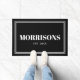 Modern black white custom name date double border doormat