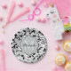 Modern Black White Floral Girly Monogram With Name Paper Plate