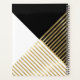 Minimal gold stripes on white and black geometric composition abstract art, modern monochromatic triangles colour block and faux gold foil stripes, luxury design. A simple geometry of lines, stripes and triangles abstract graphic background, that brings a special touch of style and elegance.
