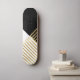 Minimal gold stripes on white and black geometric composition abstract art, modern monochromatic triangles colour block and faux gold foil stripes, luxury design. A simple geometry of lines, stripes and triangles abstract graphic background, that brings a special touch of style and elegance.