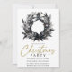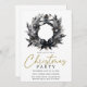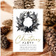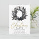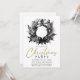 Modern Black & White Gold Christmas Wreath Party Invitation
