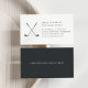 Simple and professional design for golf pros or golf instructors features a pair of crossed putters with your name, title and contact details alongside in soft off-black lettering on a white background. Personalise the back with a single line of custom text in the opposite colorway.