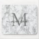 Modern Black White Grey Marble Monogram Script Mouse Pad