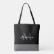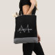 Modern Black White Grey Script Monogram Name Tote Bag