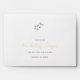 A simple but sophisticated, elegant and traditional yet chic and modern wedding return envelope with a white rose and a branch of eucalyptus, hand drawn in graphite pencil.