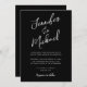 These modern custom wedding invitations feature a hand lettered white calligraphy script on a black background. Personalise with your names and wedding date along with all your wedding details. Best of wishes for your wedding and marriage! Designed by Susan Coffey.