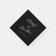 This modern personalised wedding paper napkin features hand lettered white script with your names and wedding date on a simple black background. Designed by artist Susan Coffey.