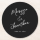 Modern Black White Hand Lettered Script Wedding Round Paper Coaster