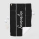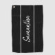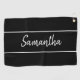 Get your game on with this Modern Black White Hand Lettering Script Name Golf Towel. It is an elegant minimal design with customisable background and white trendy hand lettering script font on the centre. Makes perfect gift idea for women golfers!