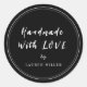 Personalised Handmade with love in modern script on black background. Adds a pretty finishing touch for all of your handmade gifts.