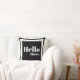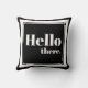 Modern throw pillow in black and white with a thick white frame and the phrase "Hello There."