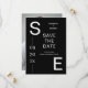 This modern minimalist simple photo wedding Save the Date card features black background with modern white calligraphy and initials, monogram. At the back you can personalise this trendy Save the Date with your own photo.