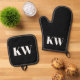 Modern Black White Monogram Initials Personalised Oven Mitt & Pot Holder Set