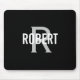 Modern design with black background, a modern grey monogram with white name. Personalise with your name and initial.