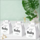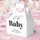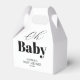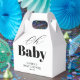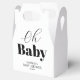 Typography baby shower favour boxes featuring a plain white background, the title "oh baby", and a elegant template that is easy to personalise.