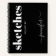 Modern Black White Personalised Sketchbook Name Notebook