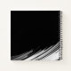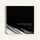 Modern notebook features a minimal artistic design in a classic black and white colour palette. Custom name and sketchbook with volume number presented right justified, framed by a minimalistic artistic swoosh design.
