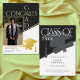 Celebrate your achievement with this modern black, white and gold geometric Congrats Grad foil photo graduation announcement design. The front features a bold photo layout, while the back includes a stylish cap and diploma silhouette. Perfect for high school or college seniors wanting a minimalist, professional look. Use a color or black and white photo. Created by Simply Farmhouse Press.