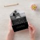 Modern Photo collage template in black and white and dark grey. Add any of your favourite photos and they will appear black and white. This invitation is a great way to send all your details in one easy to use format. All you need to do is change the text to your personal requirements, then you guest can detach the rsvp information and send back. So easy and convenient.