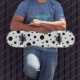 A stylish and modern skateboard deck featuring a classic black and white polka dot pattern. This eye-catching monochrome design is perfect for skaters who love a trendy, minimalist, and timeless aesthetic. The all-over dot pattern creates a chic and fun retro-inspired look, making it an excellent way to personalise your sports gear and stand out.