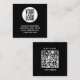 Choose the corner style and type of paper from the options menu. Make a bold first impression with this sleek black and white business card featuring your custom logo, essential contact details, and a scannable QR code that links directly to your website. This card blends professionalism with convenience and is perfect for networking, marketing events, and brand promotion.