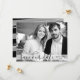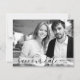 Stylish and chic Modern Black & White Save Our Date Script Photo Announcement Cards featuring white, handdrawn stripes. This design is elegant and trendy in both design and typography. Comes with matching accessories: visit www.sparklenglitter.com