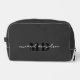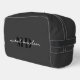 A modern black and white script calligraphy monogrammed dopp kit is perfect for organising and carrying everyday essentials.