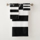 Modern Black White Striped Pattern Name Bath Towel Set.