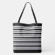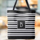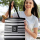 Modern Black White Stripes Initial Monogram Tote Bag