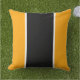 Modern Black White Stripes On Bright Yellow Orange Cushion