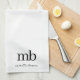 Modern Black White Trendy Script Initial Monogram Tea Towel