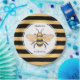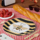 Cute and modern birthday party plates featuring black and yellow stripes with a beautiful illustration of a Bee