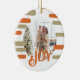 Modern muted sage green orange white block pattern Photo Template Christmas holiday ornament - add your own photo to this hanging ornament from Ricaso - featured with a trendy bold pattern background.