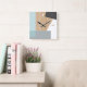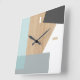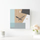 Modern Block Stripes Pattern Art On Faux Woodgrain Square Wall Clock