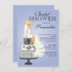 Start off your elegant bridal shower off right with our trendy blonde bride bridal shower invitation featuring a classy Blonde bride sitting on a stylish damask 3 tier wedding cake set on a purple blue background. Just customise our invitation with your wedding shower information and you're all set to go. ©JW Illustrations