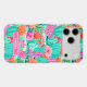 Customize this colorful watercolor iPhone 17 pro max case featuring cacti with beautiful blooms in pinks and orangess with your name in a modern CAP font in white on pink. It's so modern and trendy!