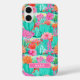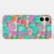 Customize this colorful watercolor iPhone 16 plus case featuring cacti with beautiful blooms in pinks and oranges with your name in a modern CAP font in white on pink. It's so modern and trendy!