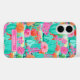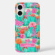 Customize this colorful watercolor iPhone 16 case featuring cacti with beautiful blooms in pinks and oranges with your name in a modern CAP font in white on pink. It's so modern and trendy!