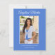 Modern, cute, and chic, blue, two-sided graduation photo announcement flat card for Class of 2022 or any year. Personalise with your own photo on the front, your name, school name, and graduation year. Formatted vertically. The back of this card has 2 photos and any details you would like. Include high school accomplishments, plans for the future, graduation party information, or anything else you want to share. The background colour is customisable, as well.