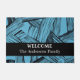 Modern Blue Abstract Family Name Welcome Doormat