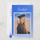 A unique and modern card with a modern blue, abstract color scheme. Similar blue background on the back of the card containing invitation details. The photo and all text is easily changed with the template. The "Graduate" text, however, is actually a graphic image but is editable. Suitable for a high school or college graduation. Selecting “Personalize this design” offers you several edit options to easily change the text (wording, plus type font, color, size, position) and to possibly edit the design elements. You may also want to scroll down to the section “Transfer design to a product” for a few suggestions about other items this design can be used on.
