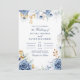 This modern floral wedding invitation features a bold date highlight design, accented with elegant blue roses and golden botanical details. The watercolor elements and sophisticated font pairing create a timeless and romantic feel, perfect for classic, garden, or formal weddings.