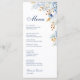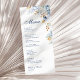 Impress your guests with this modern wedding menu card featuring elegant watercolor florals in dusty blue and gold. This design pairs perfectly with our Modern Blue and Gold Floral Wedding Collection, offering a cohesive and stylish table setting.