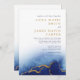 These elegant, modern blue and gold watercolor wedding invitations are fully customisable and perfect for a contemporary wedding.